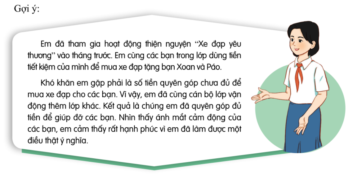 + Nêu tên hoạt động thiện nguyện, nhân đạo em đã tham gia