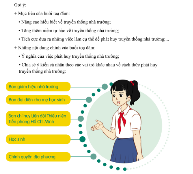 + Chia sẻ ý kiến cá nhân theo các vai trò khác nhau về cách thức phát huy truyền thống của nhà trường: