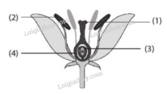 Thụ phấn là quá trình phát tán hạt phấn từ nhị tiếp xúc với đầu nhuỵ → Quá trình thụ phấn xảy ra ở đầu nhuỵ (vị trí (1) trong hình)..