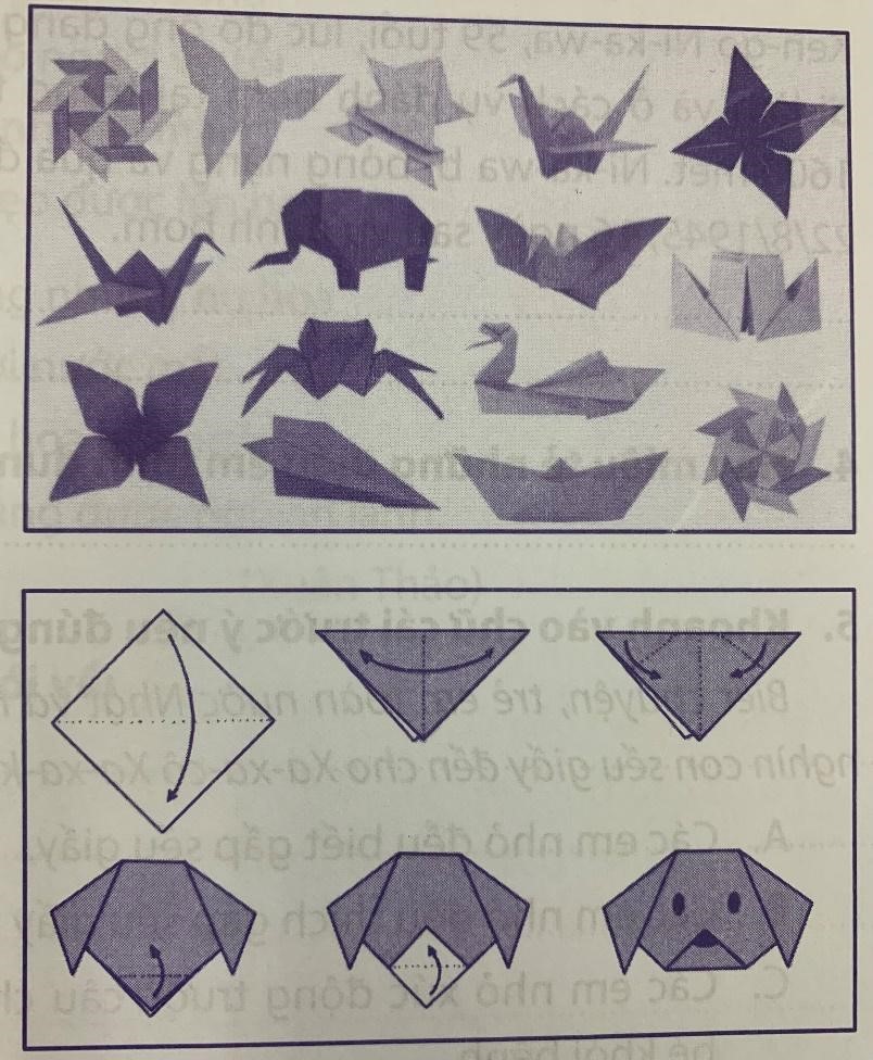 Em quan sát hình và thực hành gấp giấy thành các con vật đáng yêu.