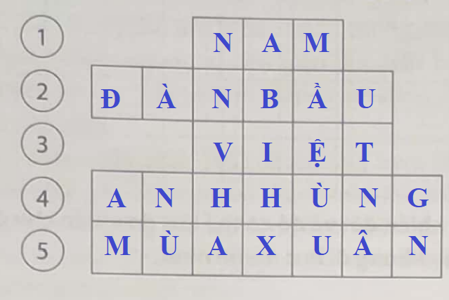 Em hãy giải các ô chữ sau theo gợi ý: