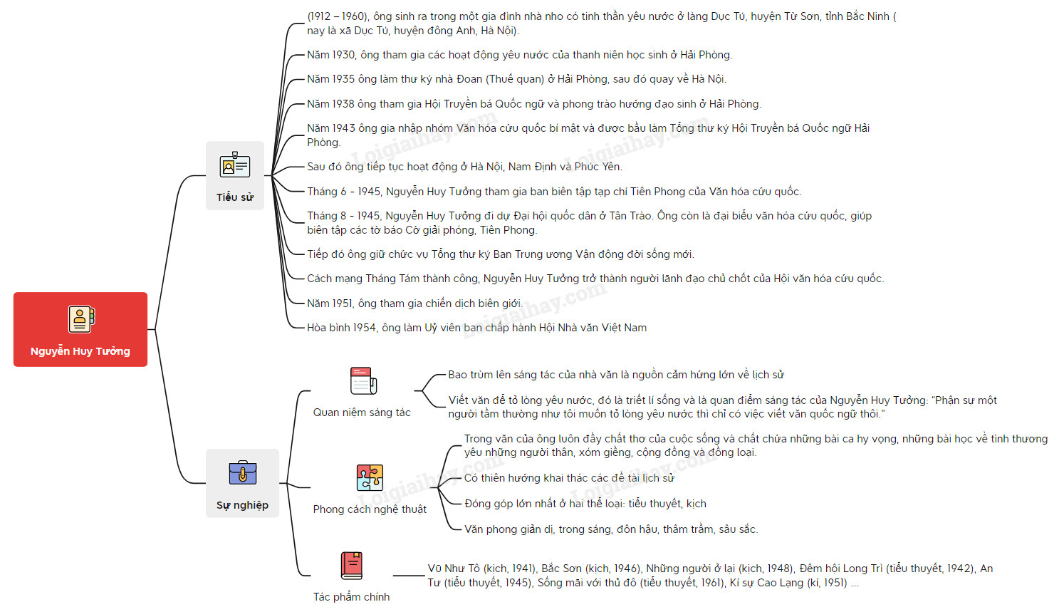 Sơ đồ tư duy tác giả Nguyễn Huy Tưởng:
