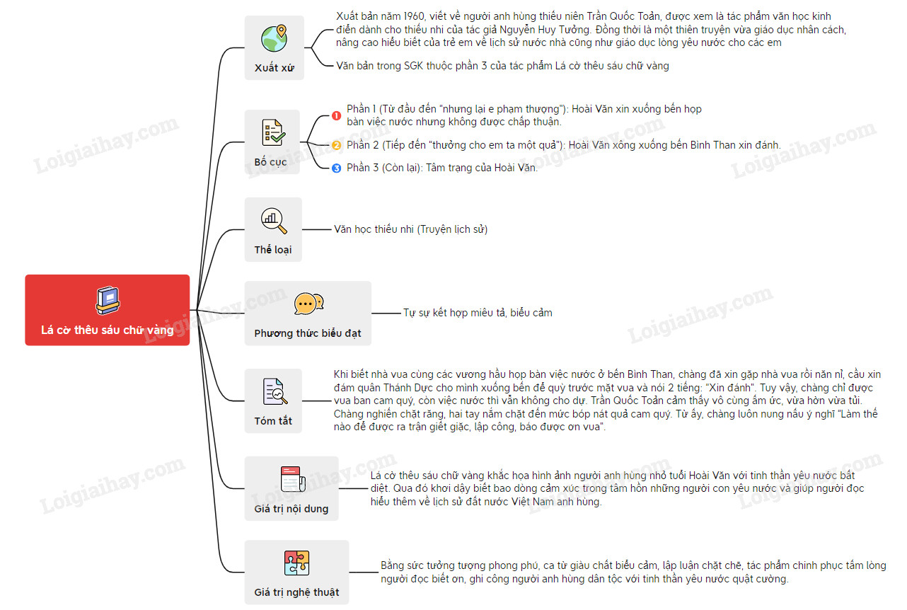 Sơ đồ tư duy văn bản Lá cờ thêu sáu chữ vàng: