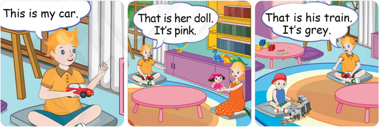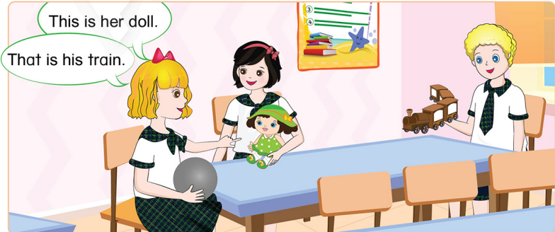 That is her doll. It’s pink. (Kia là búp bê của cô ấy. Nó màu hồng.)
