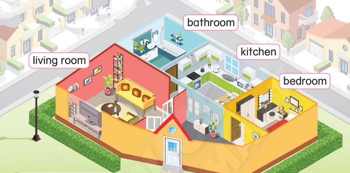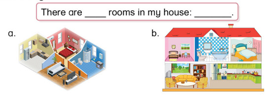 a. There are four rooms in my house: a living room, a kitchen, a bedroom and a bathroom.