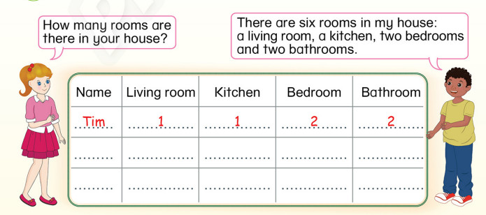 How many rooms are there in your house, Tim? (Nhà bạn có bao nhiêu phòng , Tim?)