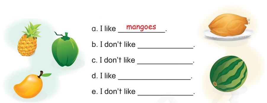 c. I don’t like mangoes. 🙁 (Tôi không thích xoài. :()