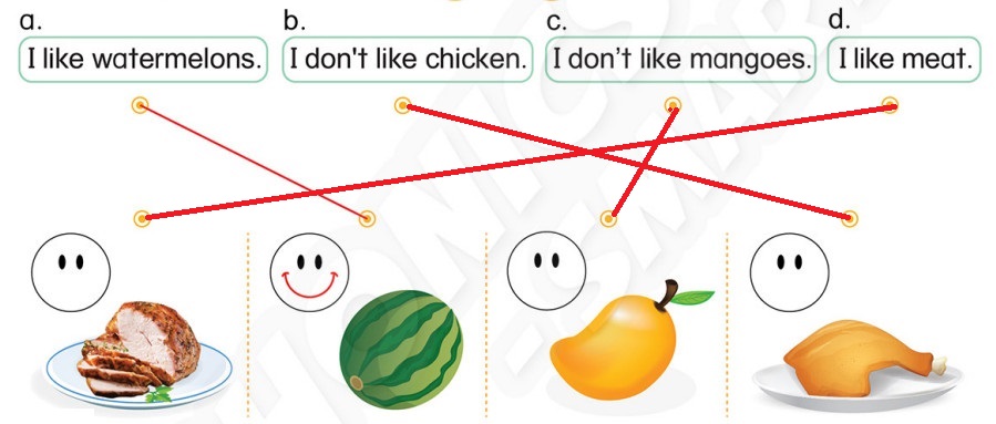 d. I like meat. 🙂 (Tôi thích thịt. :))