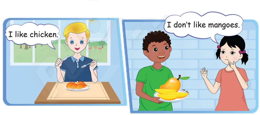 – I don’t like mangoes. (Tôi không thích xoài.)