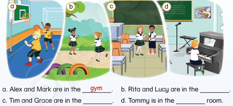 d. Tommy is in the music room. (Tommy ở trong phòng học nhạc.)
