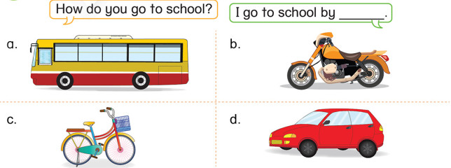 I go to school by _____. (Tôi đi đến trường bằng _____.)