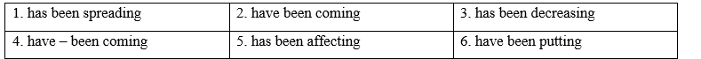 (Điền vào chỗ trống dạng thì Hiện tại hoàn thành tiếp diễn của các động từ.)