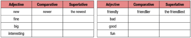 a. Complete the table with the corect comparative and superlative adjective