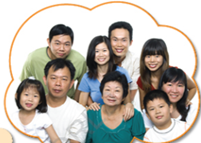 (một gia đình bao gồm cha mẹ, con cái, cô, chú, ông bà, v.v.)