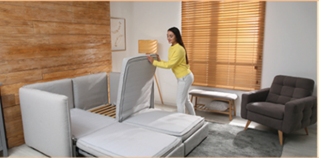 B: That makes sense. With walls that can move to change room configurations and smart furniture that maximizes space, it offers a customizable living experience perfect for individuals with dynamic lifestyles.