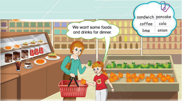 (Chúng tôi muốn một số thức ăn và đồ uống cho bữa tối.)