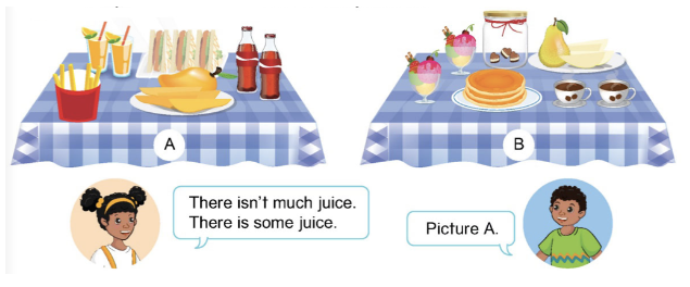 Cách chơi: Các bạn miêu tả các món ăn và nước uống có trong từng bức tranh A và B, sau khi khi miêu tả các bạn sẽ đoán xem bạn của mình đang nói về bức tranh A hay B.
