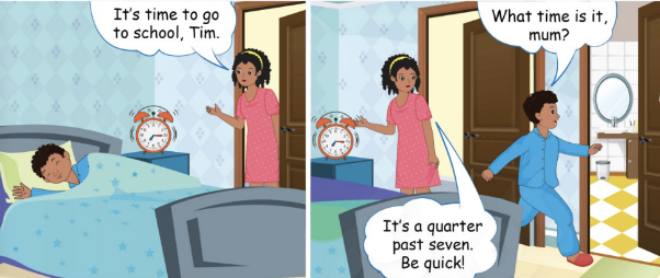 It’s time to go to school, Tim. (Đã đến giờ đi học rồi, Tim.)