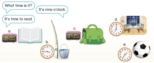 Listen and repeat. Read and circle. Write the time and say. Listen and read. Listen and match. Ask and answer.