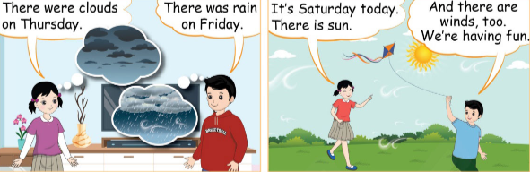 Tommy: I live in the city. It’s Tuesday today. There is sun. There are winds, too. There was rain on Monday. There were clouds in the sky, too.