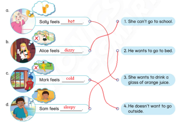 d. We are hot and we want to drink juice. (Chúng tôi đang nóng và chúng tôi muốn uống nước ép.)
