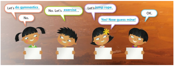 A: Let’s do gymnastics. (Cùng tập thể dục dụng cụ đi.)