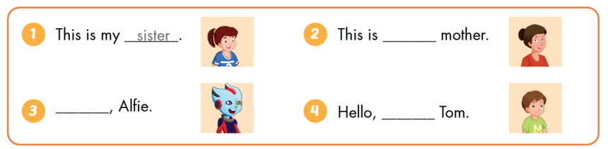 Tom: OK, Alfie, this is my (3) mother. (Được rồi Alfie, đây là mẹ tớ.)