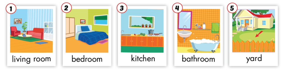 Ví dụ: Cô sẽ chọn thẻ ở vị trí số 3 và nói: “Three?”, các bạn sẽ đoán nhanh là phòng bếp: “kitchen”