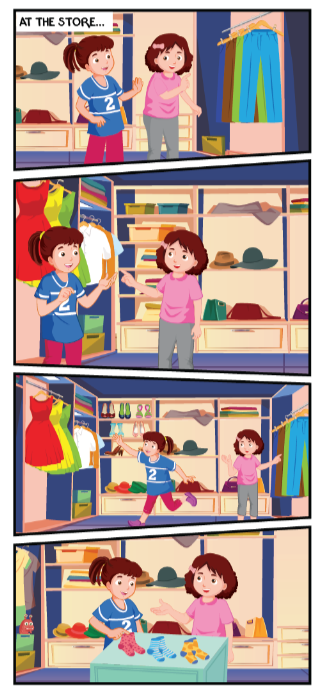 Lucy: I want some shorts. (Mình muốn vài cái quần soóc.)