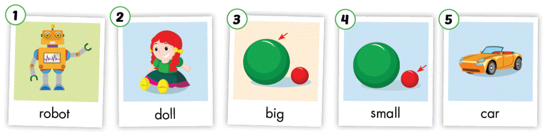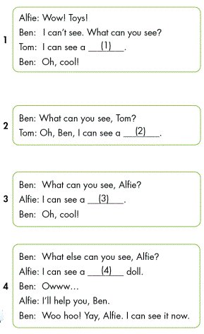 Alfie: I can see a (4) small doll. (Mình có thể nhìn thấy một con búp bê nhỏ.)