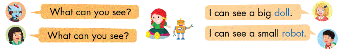 B: I can see a big doll. (Tôi có thể nhìn thấy một con búp bê to.)