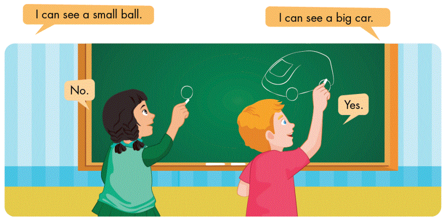 Tom: I can see a big ball. (Mình nhìn thấy một quả bóng thật to.)
