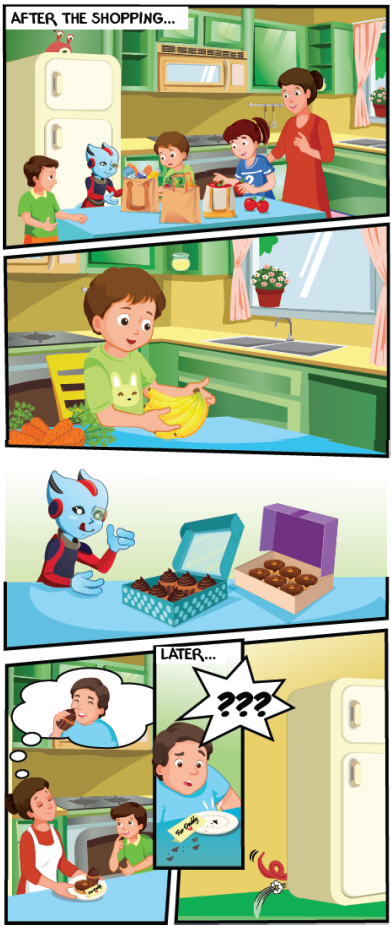 3. Alfie: There are six donuts. Yum! Yum! (Có sáu cái bánh vòng. Ngon quá!)