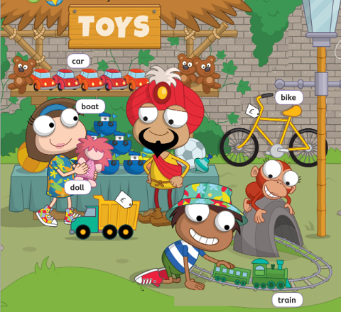 Rose: It’s (5) a kite! And look! (6) A ball and (7) a boat.