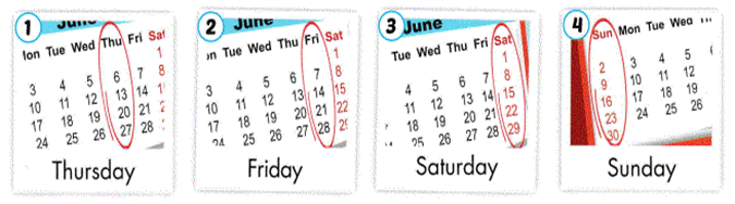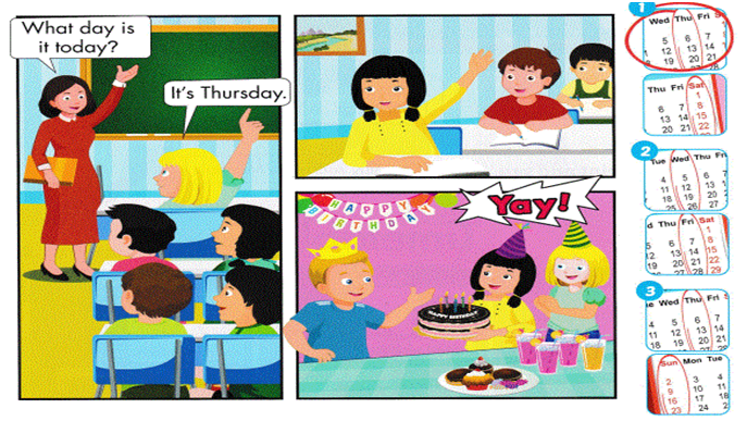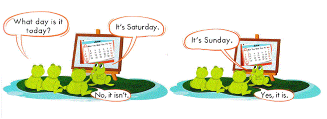 Cách chơi: Một người sẽ ngồi quay lưng về phía bảng để đoán hình. Người còn lại sẽ gợi ý hỏi hôm nay là thứ mấy “What day is it today?”. Người đoán tranh sẽ doán bất kì các ngày trong tuần, ví dụ “ It’s Saturday” ( Là thứ bảy. ”), hoặc “It’s Sunday.”(Là chủ nhật.). Nếu đúng thì nói “Yes, it is.”, sai thì “No, it isn’t”.