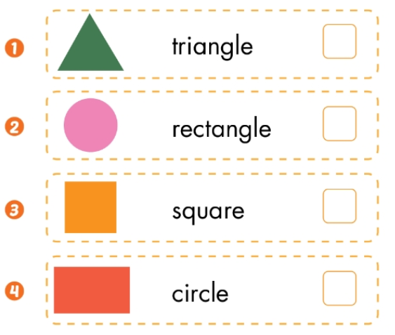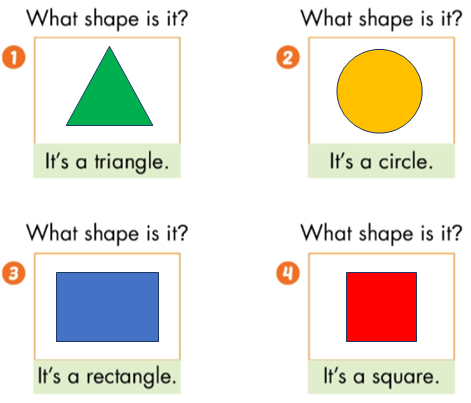 2. What shape is it? (Nó là hình gì?) – It’s a rectangle. (Nó là hình chữ nhật.)