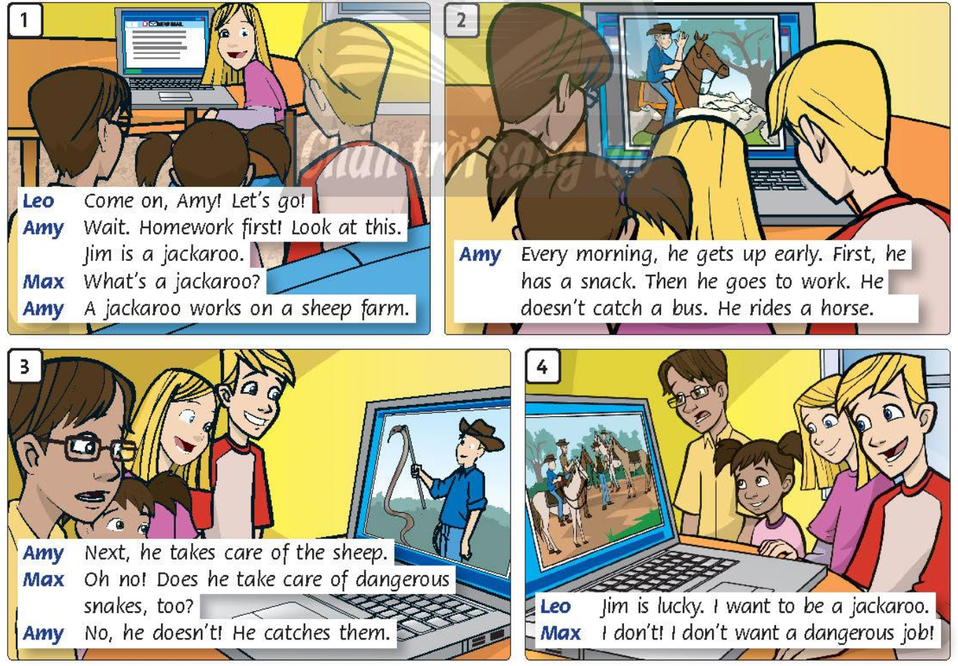 Amy: Wait. Homework first! Look at this. Jim is a jackaroo.
