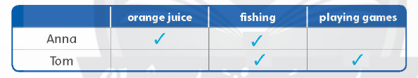 2. Listen. Check (✔) the things they like and cross (X) the things they don’t like.