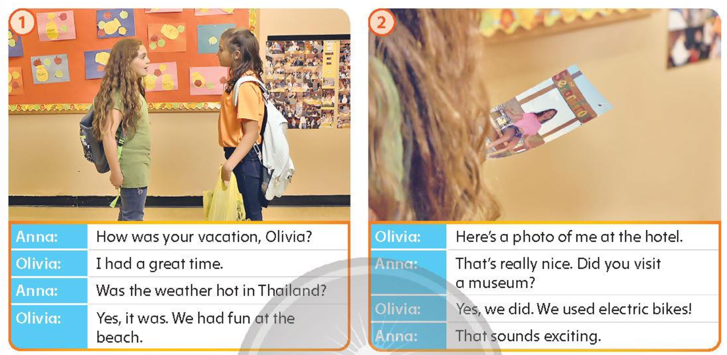 1. Anna: Kì nghỉ của cậu thế nào Olivia?