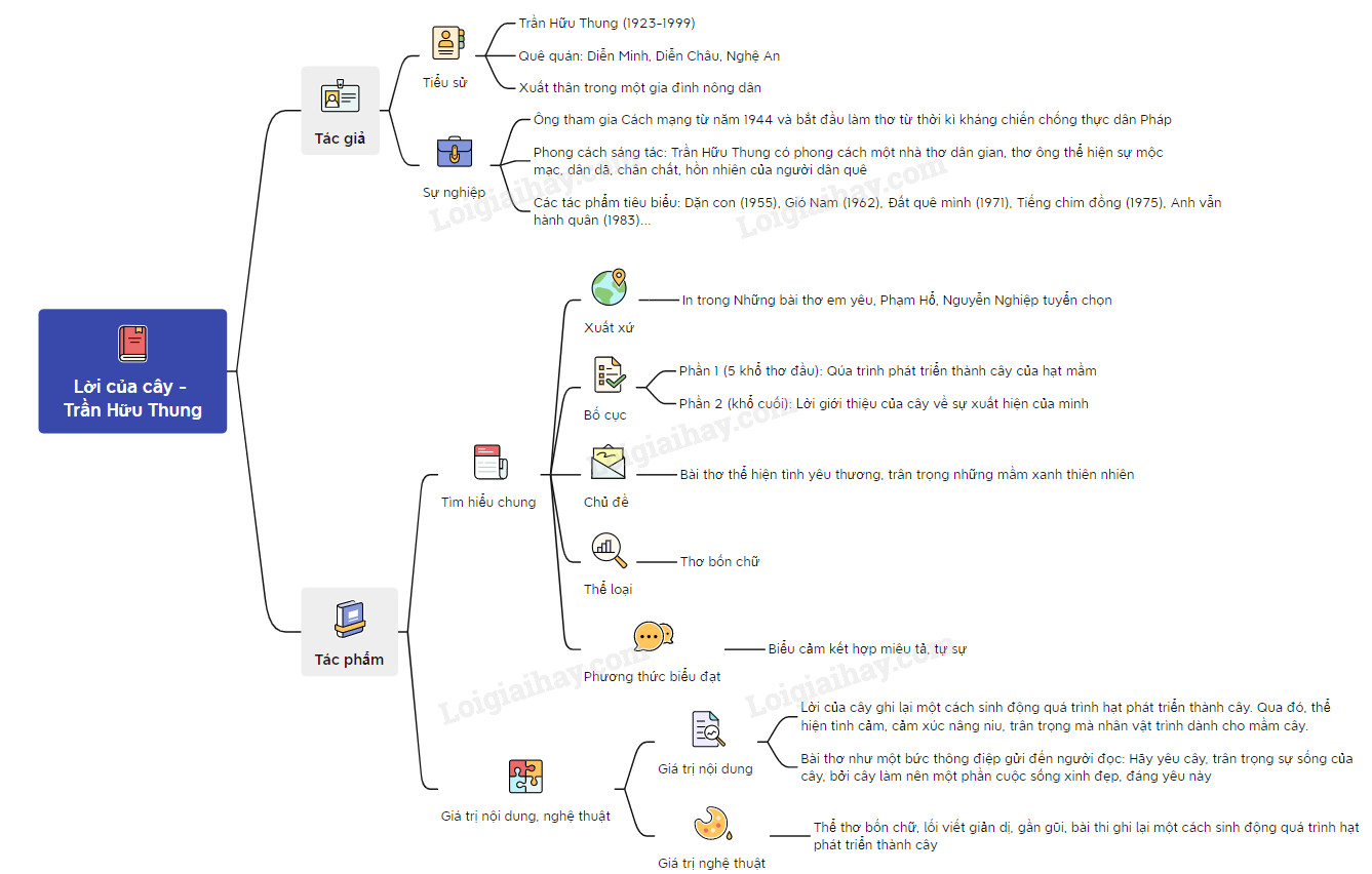 Sơ đồ tư duy về văn bản Lời của cây – Trần Hữu Thung: