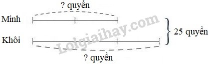 Minh và Khôi có 25 quyển vở. Số vở của Minh bằng \(\dfrac{2}{3}\) số vở của Khôi. Hỏi mỗi bạn có bao nhiêu quyển vở ?