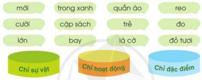 – Chỉ sự vật: Cặp sách, quần áo, lá cờ.