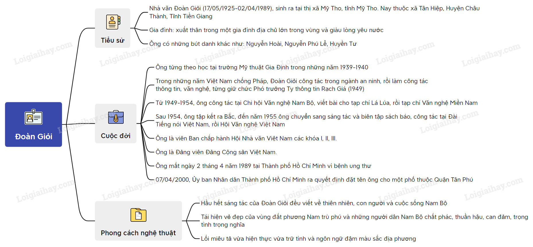 Sơ đồ tư duy về tác giả Đoàn Giỏi: