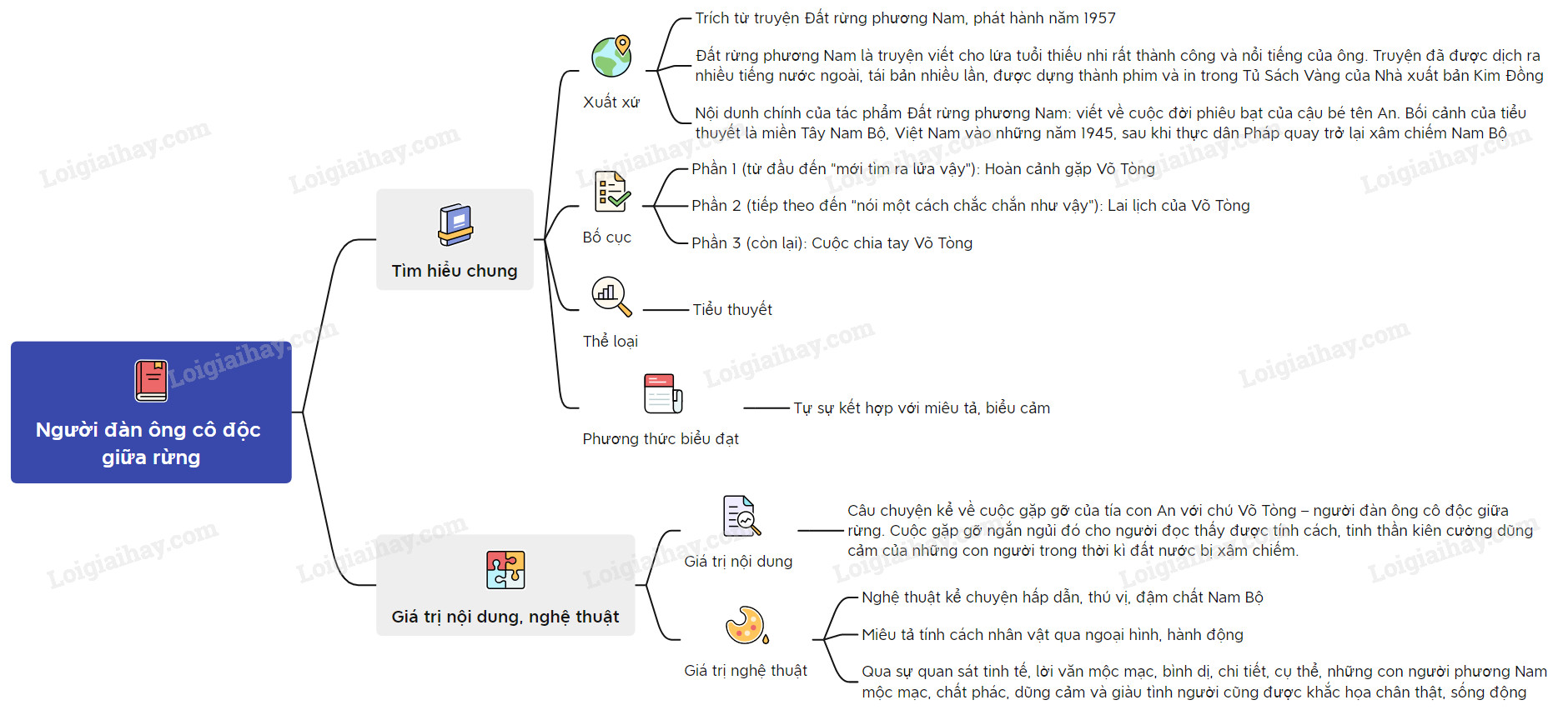Sơ đồ tư duy về văn bản Người đàn ông cô độc giữa rừng:
