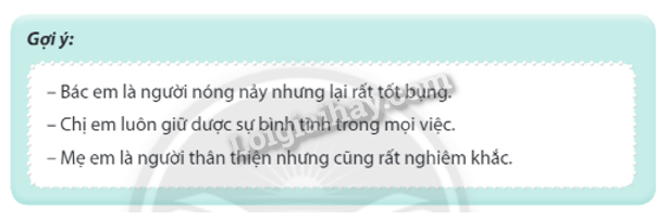 giải: Quan sát và đưa ra được một số tính cách của bạn bè, thầy cô, người thân trong gia đình.
