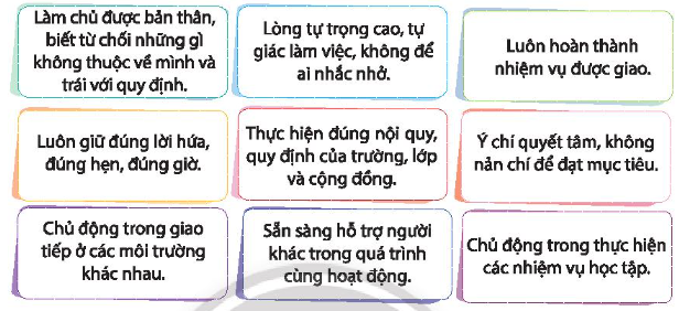 Những biểu hiện của phẩm chất mà em có và được thực hiện hàng ngày: