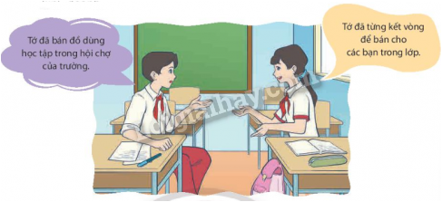 Bán đồ dùng học tập, trà sữa, đồ ăn vặt, đồ lưu niệm trong hội chợ của trường, kết vòng bán cho các bạn trong lớp, phụ mẹ bán hàng trong chợ,…