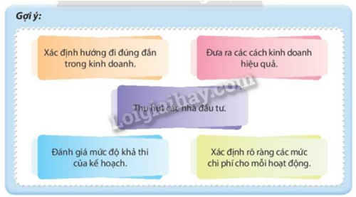 Phương pháp giải. Tìm hiểu và chia sẻ được ý nghĩa của việc lập kế hoạch kinh doanh.