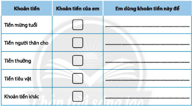 Đánh dấu X vào ô chỉ khoản tiền em có và cho biết em dùng khoản tiền đó để làm gì.