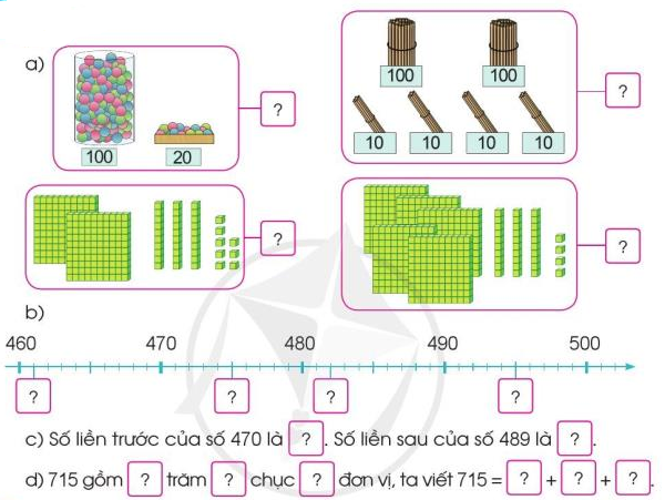 d) Xác định hàng trăm, hàng chục, hàng đơn vị của số đã cho và viết số đó thành tổng các trăm, chục, đơn vị.